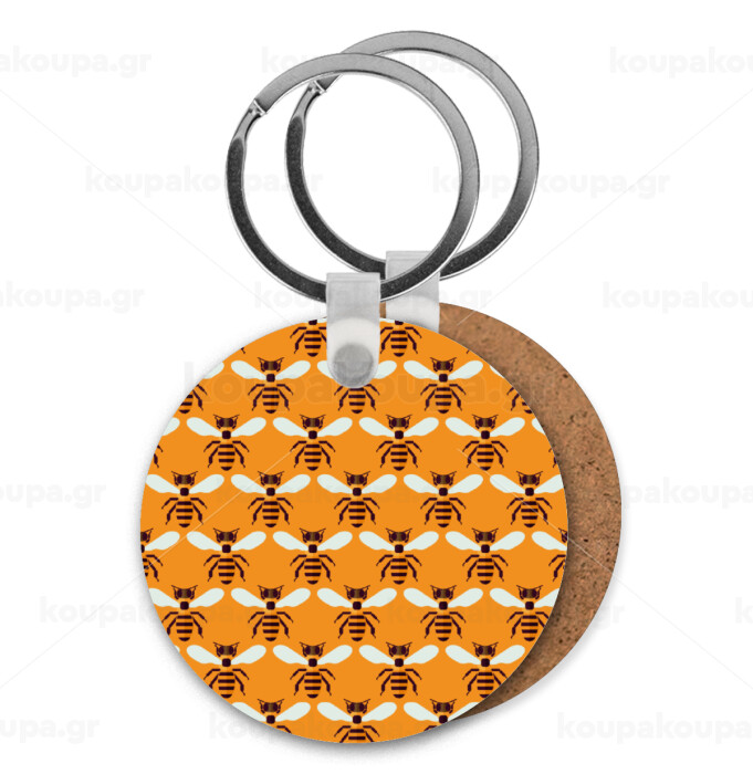 Bee, Μπρελόκ Ξύλινο στρογγυλό MDF Φ5cm