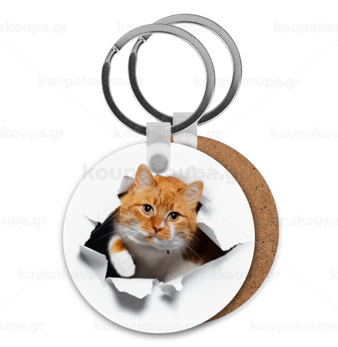 Cat cracked, Μπρελόκ Ξύλινο στρογγυλό MDF Φ5cm