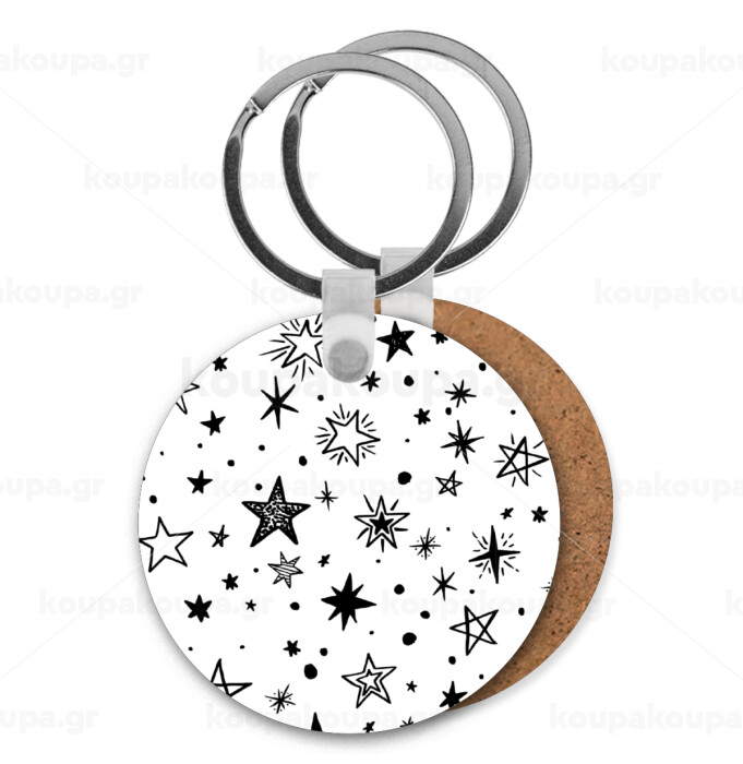 Doodle Stars, Μπρελόκ Ξύλινο στρογγυλό MDF Φ5cm