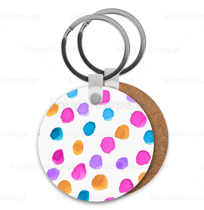 Watercolor dots, Μπρελόκ Ξύλινο στρογγυλό MDF Φ5cm