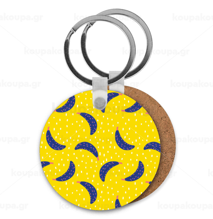 Yellow seamless with blue bananas, Μπρελόκ Ξύλινο στρογγυλό MDF Φ5cm
