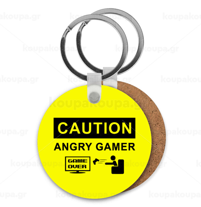 Caution, angry gamer!, Μπρελόκ Ξύλινο στρογγυλό MDF Φ5cm