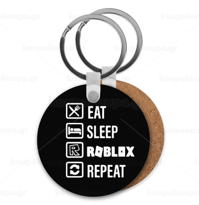 Eat, Sleep, Roblox, Repeat, Μπρελόκ Ξύλινο στρογγυλό MDF Φ5cm