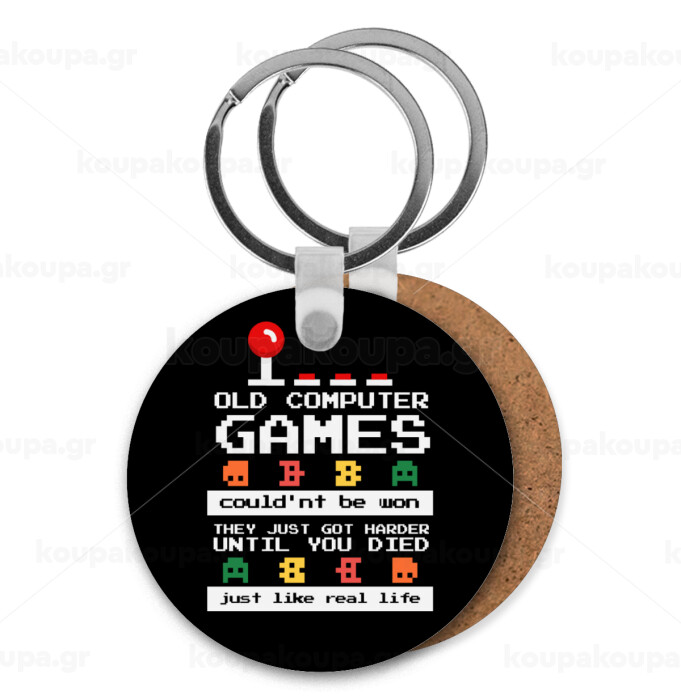 OLD computer games couldn't be won just like real life!, Μπρελόκ Ξύλινο στρογγυλό MDF Φ5cm