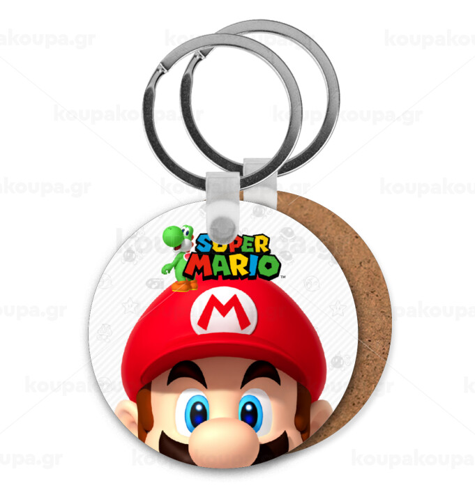 Super mario, Μπρελόκ Ξύλινο στρογγυλό MDF Φ5cm