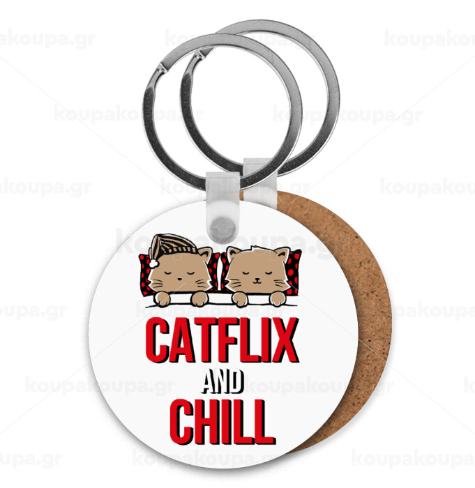 Catflix and Chill, Μπρελόκ Ξύλινο στρογγυλό MDF Φ5cm