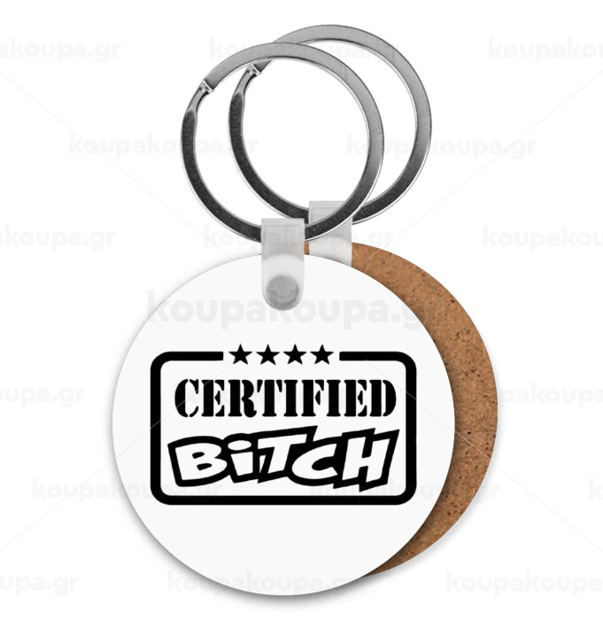Certified Bitch, Μπρελόκ Ξύλινο στρογγυλό MDF Φ5cm