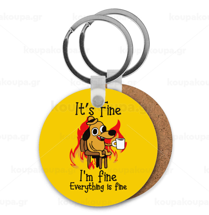 It's Fine I'm Fine Everything Is Fine, Μπρελόκ Ξύλινο στρογγυλό MDF Φ5cm