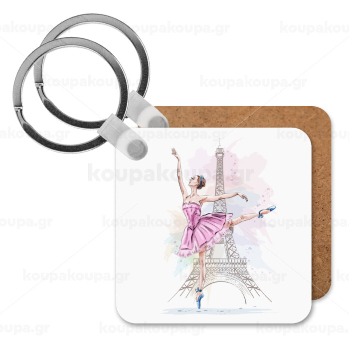 Ballerina in Paris, Μπρελόκ Ξύλινο τετράγωνο MDF