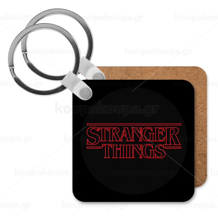 Stranger Things Logo, Μπρελόκ Ξύλινο τετράγωνο MDF