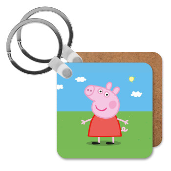 Πέππα το γουρουνάκι, Μπρελόκ Ξύλινο τετράγωνο MDF