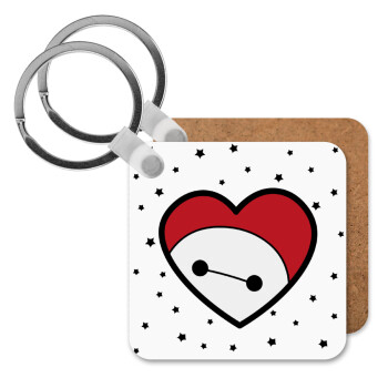 Baymax heart, Μπρελόκ Ξύλινο τετράγωνο MDF