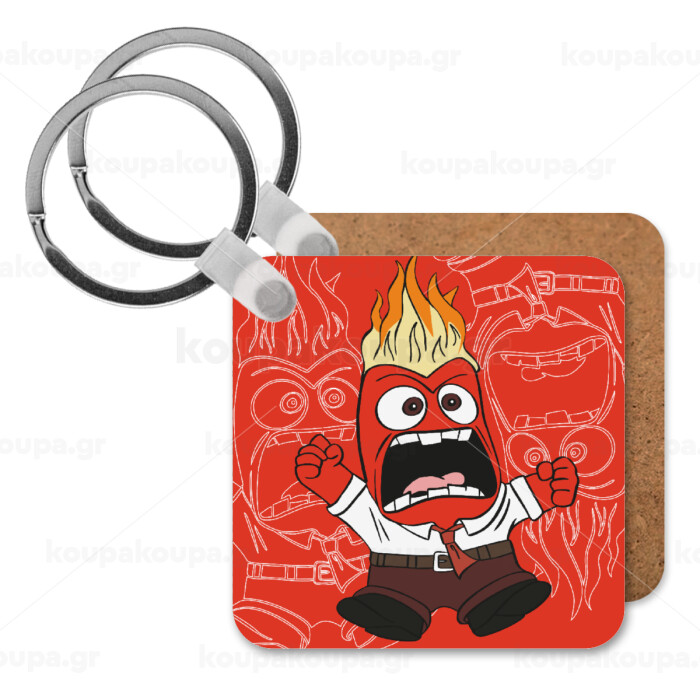 Inside Out Angry, Μπρελόκ Ξύλινο τετράγωνο MDF