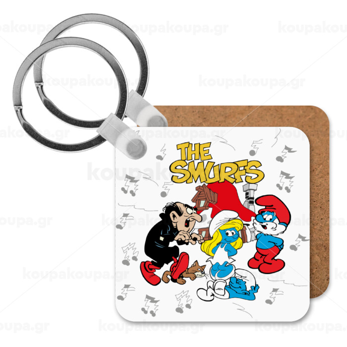 The smurfs, Μπρελόκ Ξύλινο τετράγωνο MDF
