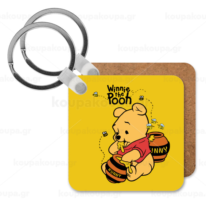 Winnie the Pooh, Μπρελόκ Ξύλινο τετράγωνο MDF