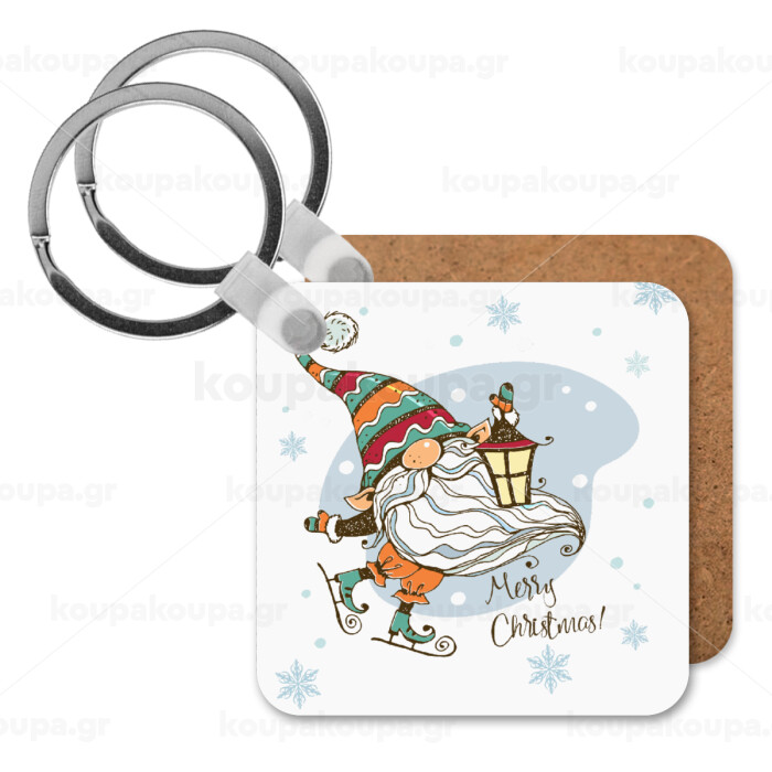 Christmas nordic gnomes, Μπρελόκ Ξύλινο τετράγωνο MDF