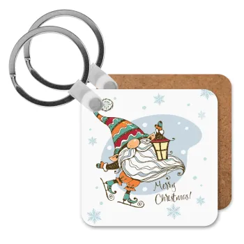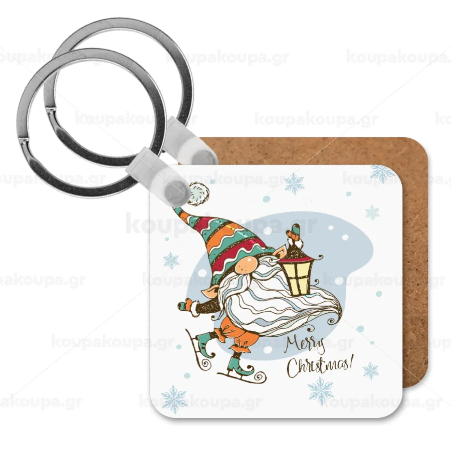 Christmas nordic gnomes, Μπρελόκ Ξύλινο τετράγωνο MDF