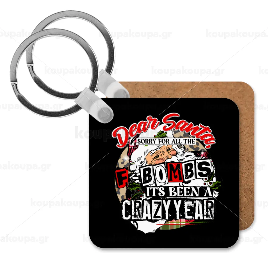Dear Santa, sorry for all the F-bombs, Μπρελόκ Ξύλινο τετράγωνο MDF