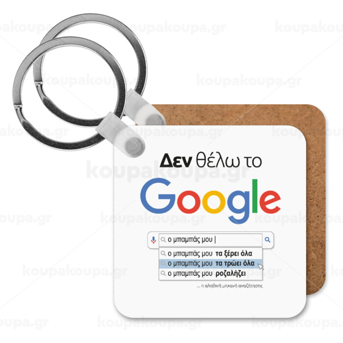Δεν θέλω το Google, ο μπαμπάς μου..., Μπρελόκ Ξύλινο τετράγωνο MDF