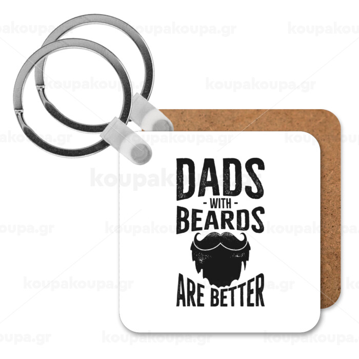 Dad's with beards are better, Μπρελόκ Ξύλινο τετράγωνο MDF