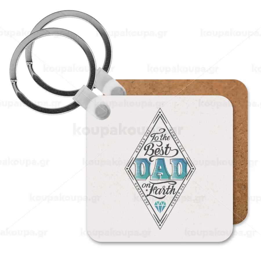 To the best DAD on earth, Μπρελόκ Ξύλινο τετράγωνο MDF