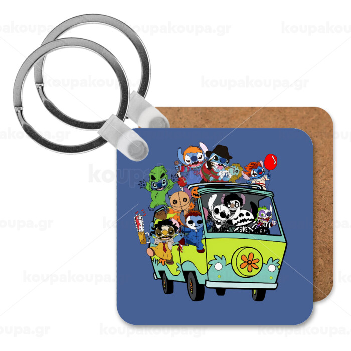 Stitch Halloween scooby car, Μπρελόκ Ξύλινο τετράγωνο MDF