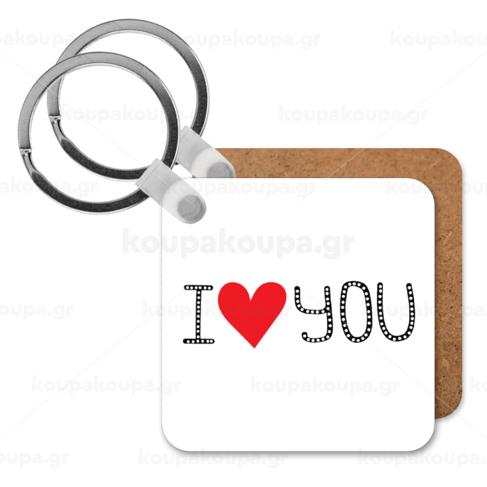 I Love You small dots, Μπρελόκ Ξύλινο τετράγωνο MDF