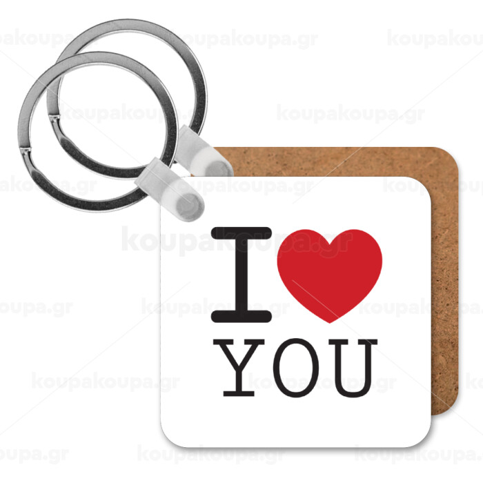 I Love you classic, Μπρελόκ Ξύλινο τετράγωνο MDF