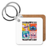 Lilo & Stitch Happy valentines day, Μπρελόκ Ξύλινο τετράγωνο MDF