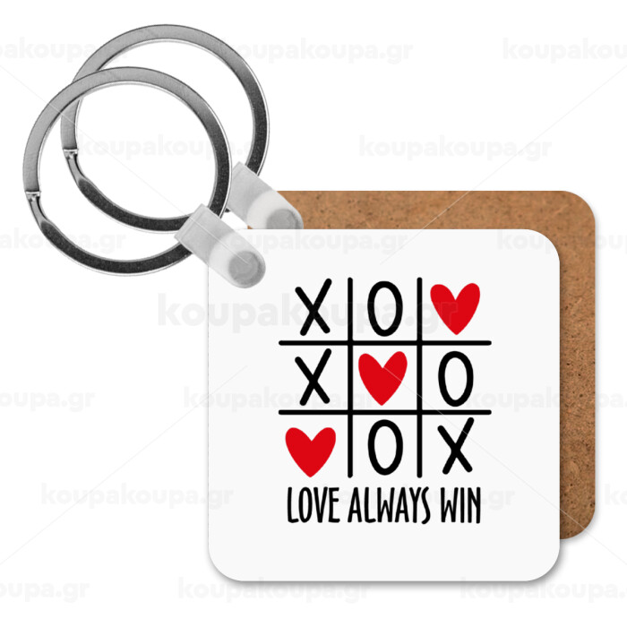 Love always win, Μπρελόκ Ξύλινο τετράγωνο MDF