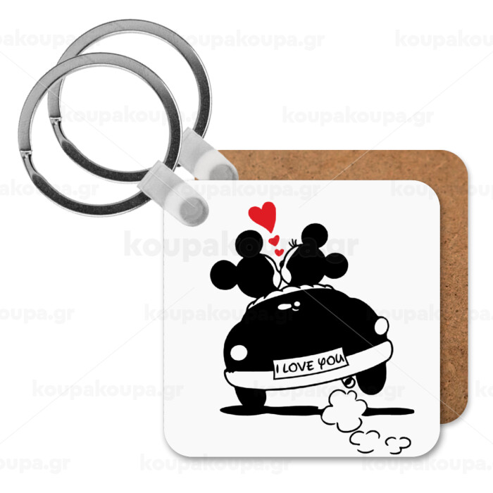 Love Car, Μπρελόκ Ξύλινο τετράγωνο MDF