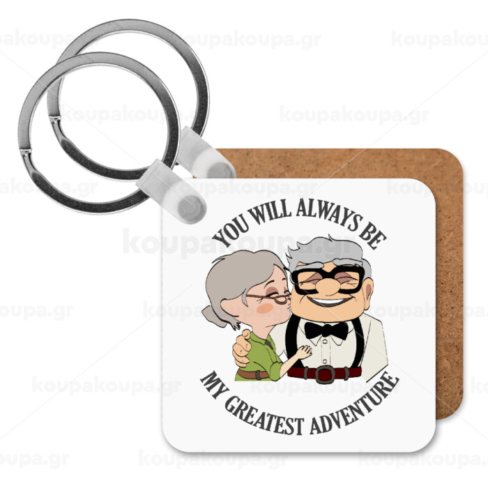 UP, YOU WILL ALWAYS BE MY GREATEST ADVENTURE, Μπρελόκ Ξύλινο τετράγωνο MDF