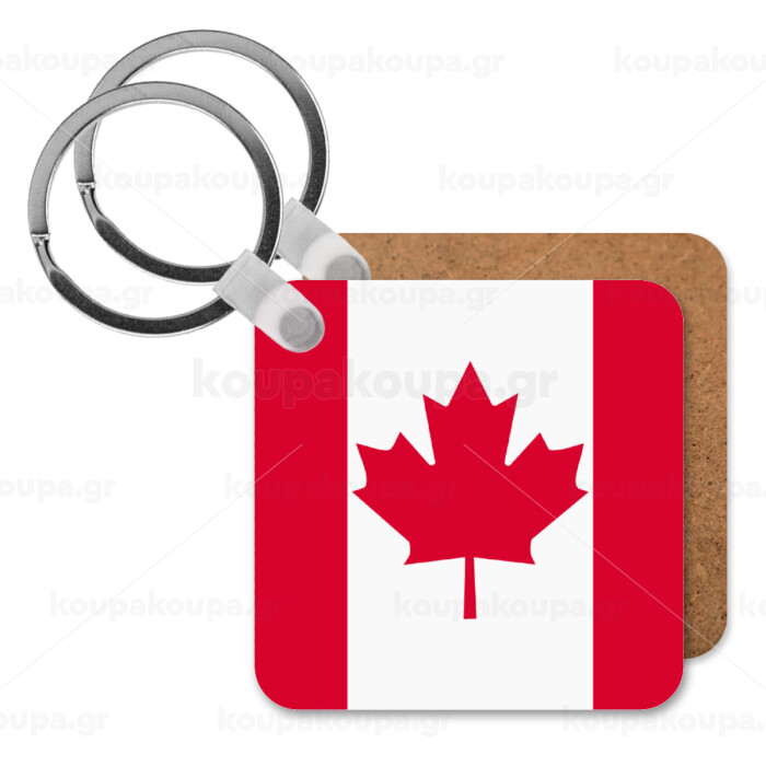 Canada flag, Μπρελόκ Ξύλινο τετράγωνο MDF