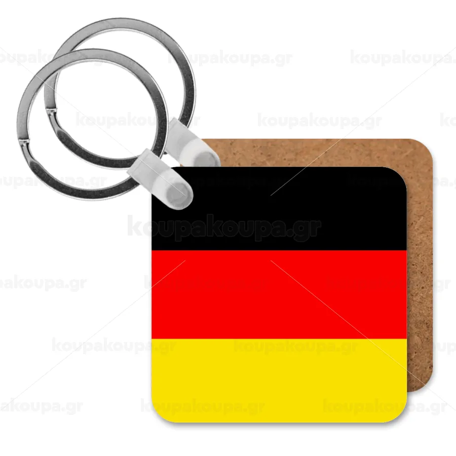 Germany flag, Μπρελόκ Ξύλινο τετράγωνο MDF