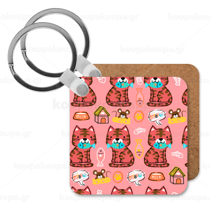 Cats and Fishes, Μπρελόκ Ξύλινο τετράγωνο MDF
