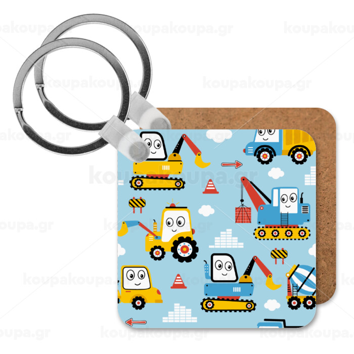 Hand drawing building truck, Μπρελόκ Ξύλινο τετράγωνο MDF