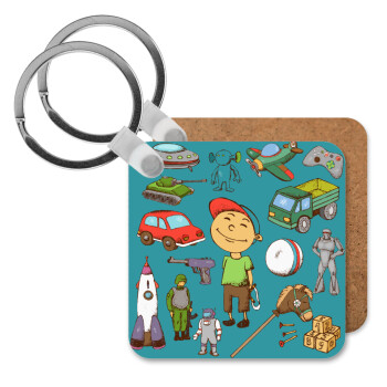 Toys Boy, Μπρελόκ Ξύλινο τετράγωνο MDF