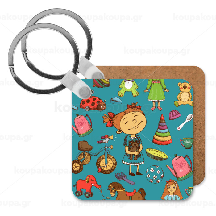 Toys Girl, Μπρελόκ Ξύλινο τετράγωνο MDF