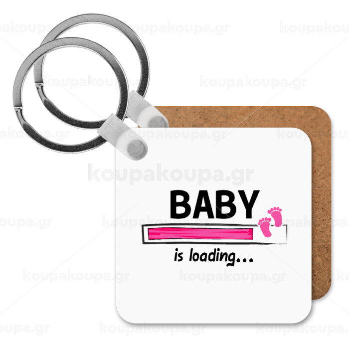 Baby is Loading GIRL, Μπρελόκ Ξύλινο τετράγωνο MDF