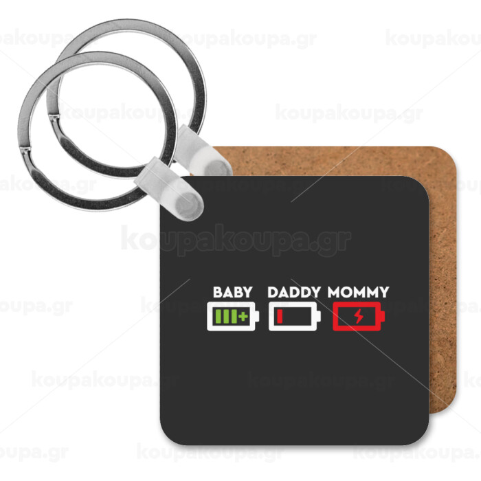 BABY, MOMMY, DADDY Low battery, Μπρελόκ Ξύλινο τετράγωνο MDF