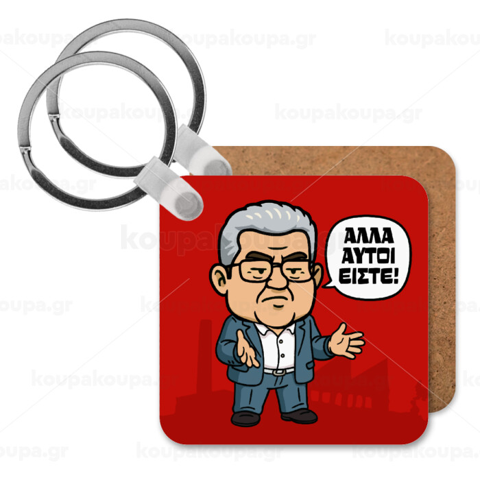 Κουτσούμπας, "Αλλά αυτοί είστε!", Μπρελόκ Ξύλινο τετράγωνο MDF