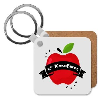 Αναμνηστικό Δώρο Δασκάλου Κόκκινο Μήλο, Μπρελόκ Ξύλινο τετράγωνο MDF