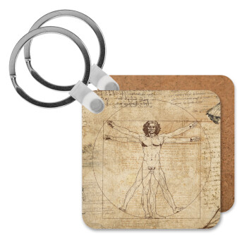 Leonardo da vinci Vitruvian Man, Μπρελόκ Ξύλινο τετράγωνο MDF