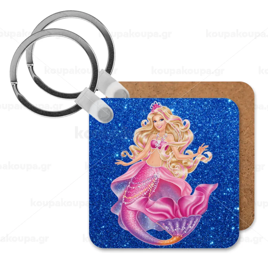 Barbie mermaid blue, Μπρελόκ Ξύλινο τετράγωνο MDF