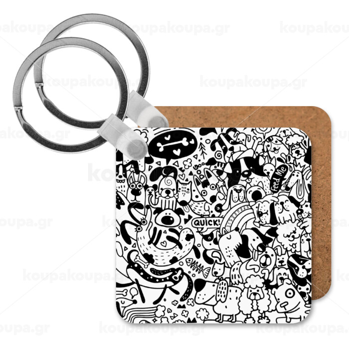 DOG pattern, Μπρελόκ Ξύλινο τετράγωνο MDF