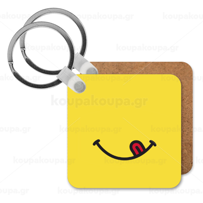 Χαμόγελο , Μπρελόκ Ξύλινο τετράγωνο MDF