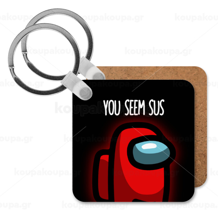 Among US, you seem sus, Μπρελόκ Ξύλινο τετράγωνο MDF