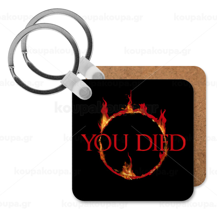 You Died | Dark Souls, Μπρελόκ Ξύλινο τετράγωνο MDF