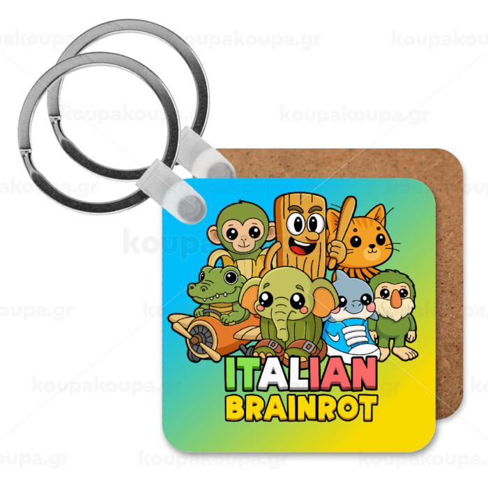 Italian Brainrot friends, Μπρελόκ Ξύλινο τετράγωνο MDF