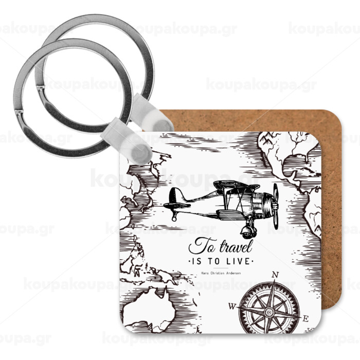 To travel is to live, Μπρελόκ Ξύλινο τετράγωνο MDF